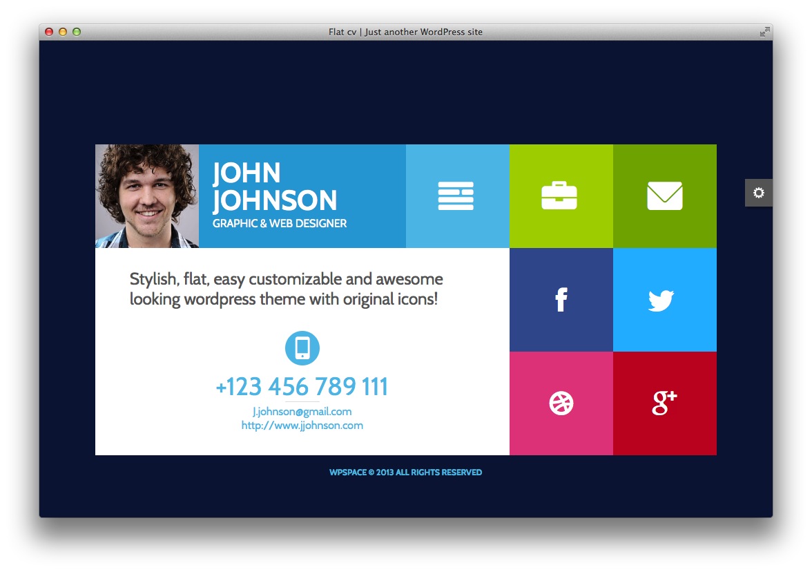 FlatCV is an unique, clan and flat design WordPress theme built to showcase your resume. It well suited for portfolio website for developers, designers, artists and other creative industry professionals. This theme features awesome flat design principles and color palettes, however, colors can be further tweaked to get the results you were looking for. FlatCV is the right choice if you are looking to take your resume to entirely new level of awesome.